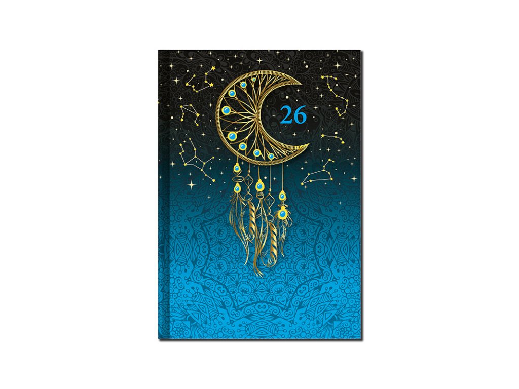 Exkluzívny denný diár s motívom LAPAČ SNOV. Diár je v pevnej väzbe s prednou penou, soft touch laminom, s modrou a zlatou razbou. Slovenské kalendárium.FORMAT | 142 x 204 |