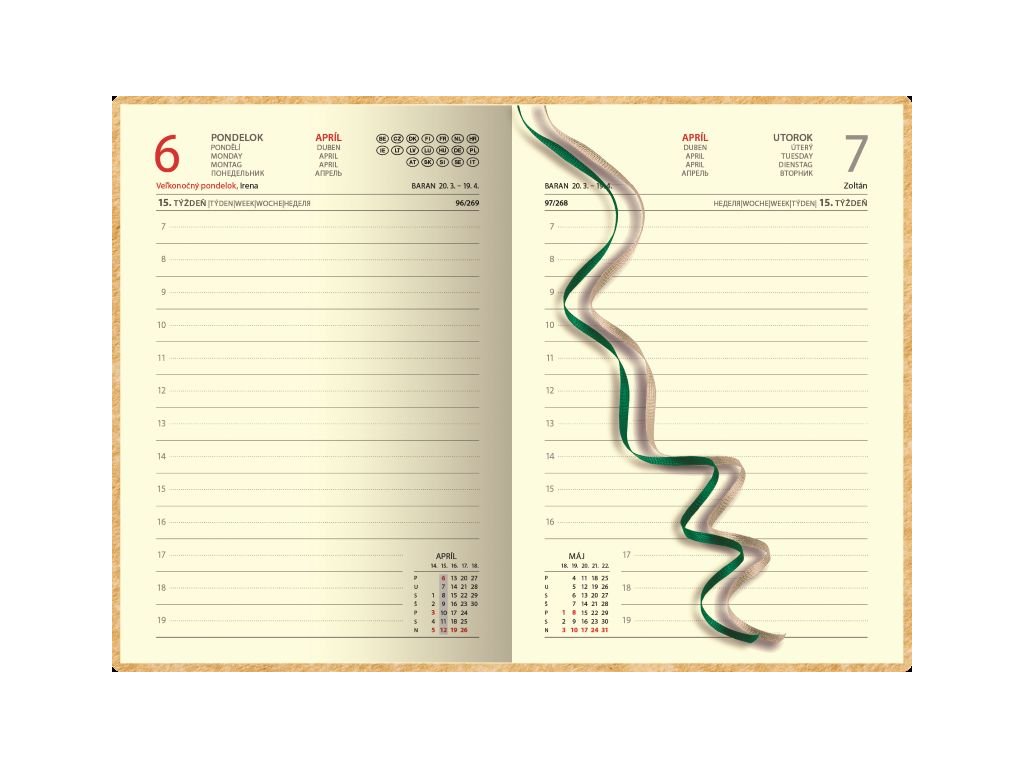 Certifikovaný denný diár s prehľadným slovenským kalendáriom na každý deň. Na obal je použitý vysokokvalitný papier NAPURA s prírodným dizajnom, 100 % recyklovateľný, s lacetkou. Vďaka vysokej kvalite vlákien je možná: termorazba, razba fóliou alebo ÚV tlač.FORMAT | 142 x 204 |