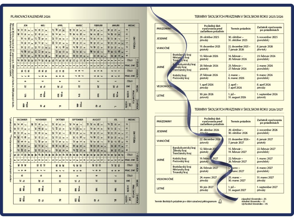 Zaujímavý dizajn týždenného diára tvorí kombinácia dvoch farieb poťahového materiálu. Diár je v pevnej väzbe s prednou penovou doskou, kovovou nálepkou roku, farebnou lacetkou, ozdobným kontrastným prešitie. Slovenské prehľadné kalendárium.FORMAT | 202 x 260 |