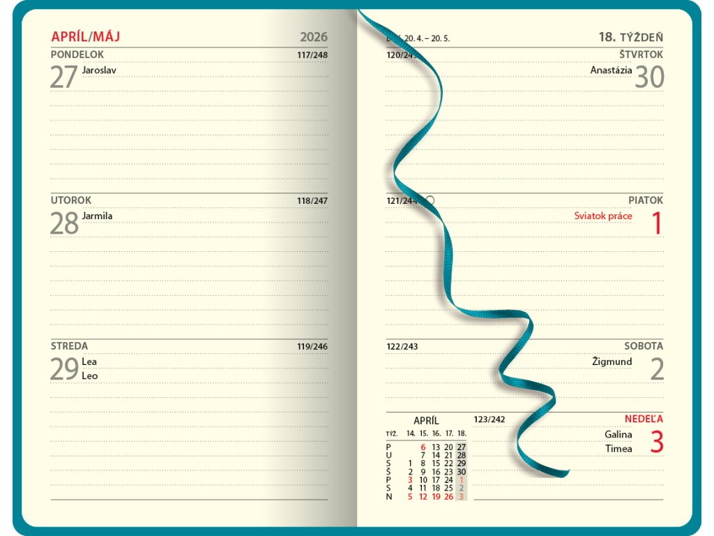 Jedinečný týždenný mini diár v svetlomodrej farbe potiahnutý kvalitným termocitlivým poťahom. Diár je v pevnej väzbe s prednou penovou doskou, farebnou gumičkou. Slovenské kalendárium.FORMAT | 92 x 142 |