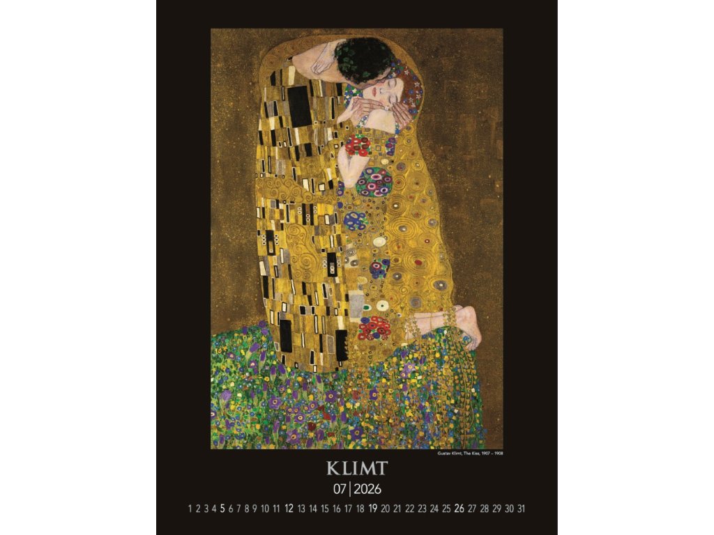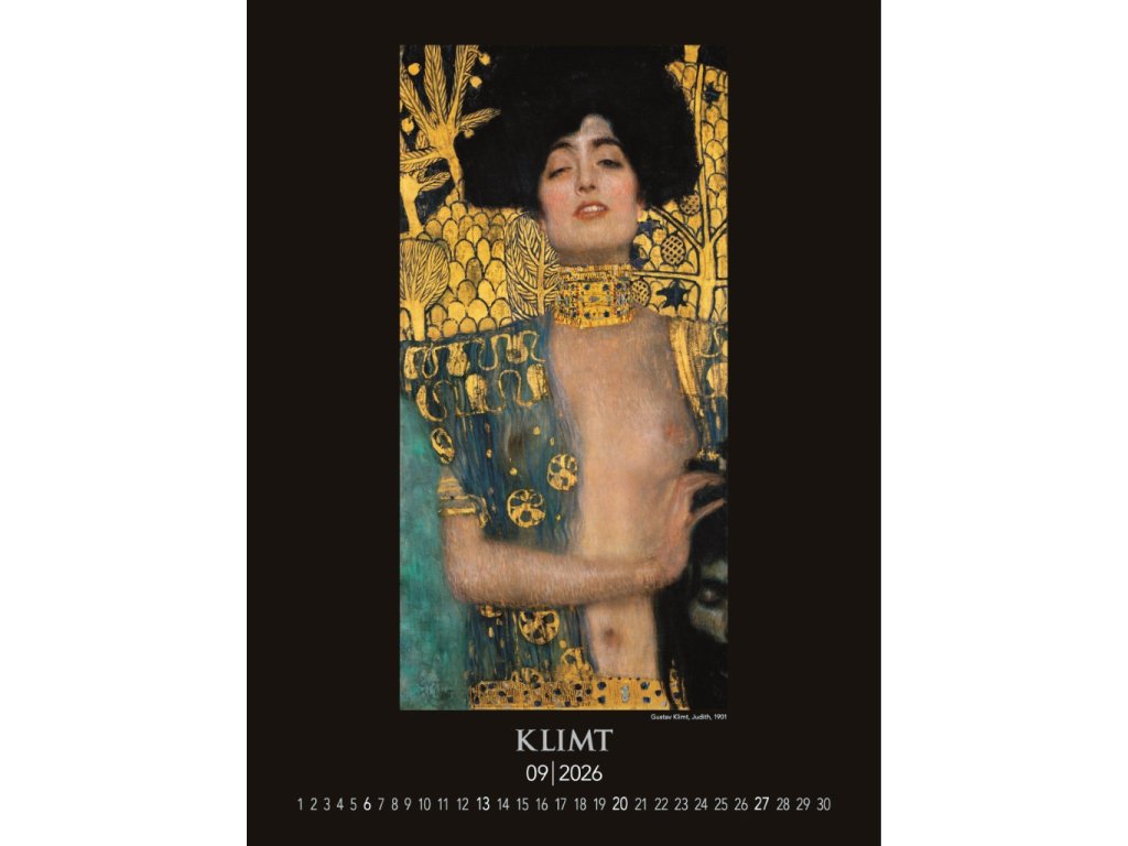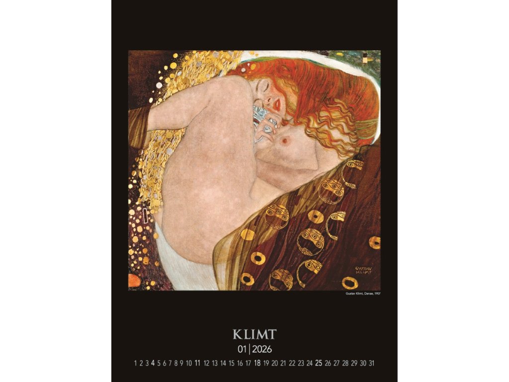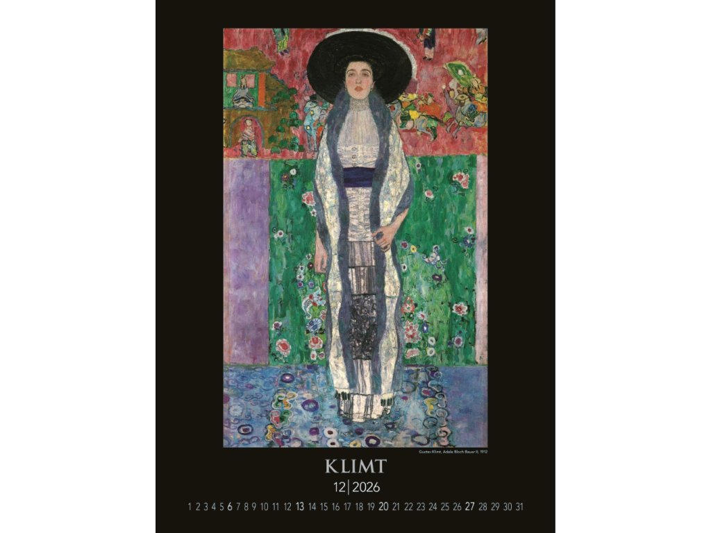 Kalendár s dielami Gustava Klimta vás zavedie do sveta zmyselnosti, symbolizmu a dekoratívneho lesku. Nechajte sa unášať ikonickými obrazmi ako Bozk, Portrét Adely Bloch-Bauer či Strom života, ktoré žiaria zlatými tónmi a jedinečným štýlom viedenskej secesie. Vďaka použitiu luxusnej zlatej fólie na vybraných detailoch kalendára vynikne Klimtov charakteristický zlatý efekt aj vo fyzickej podobe – pre ešte silnejší umelecký zážitok. Každý mesiac prináša dotyk krásy, ktorý ozvláštni váš domov alebo kanceláriu. Perfektný darček pre milovníkov estetiky a výnimočného umenia.FORMAT | 420 x 560 |