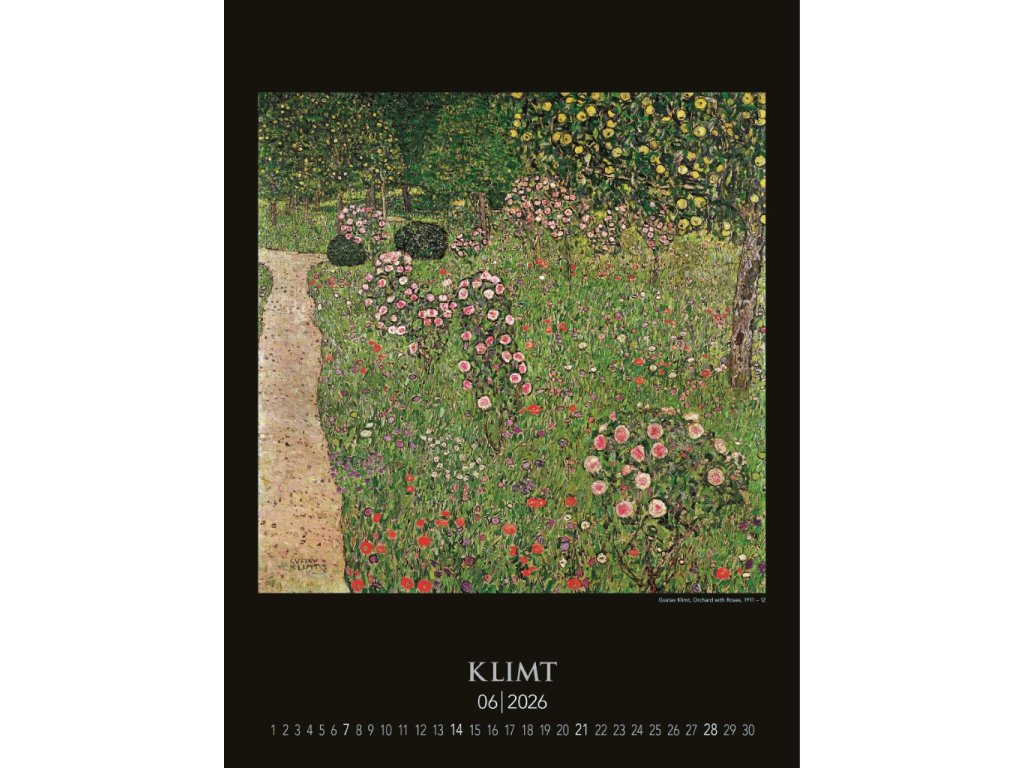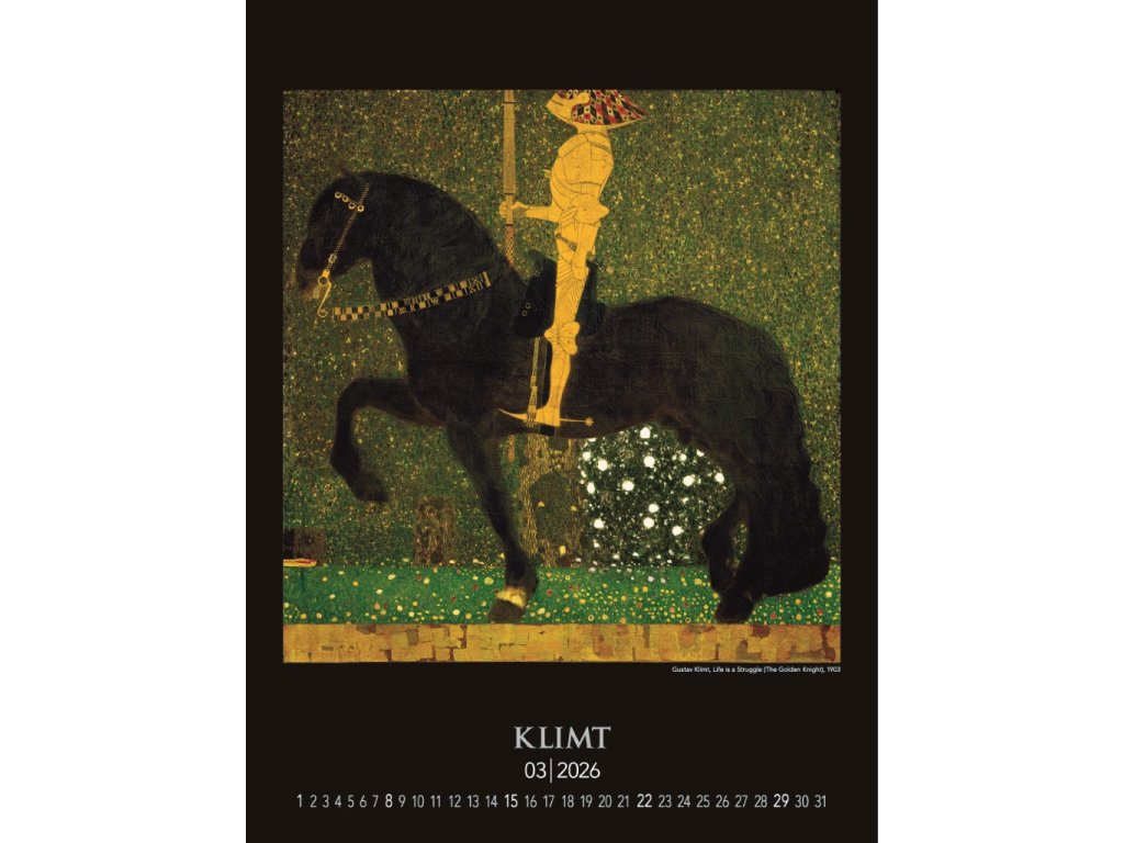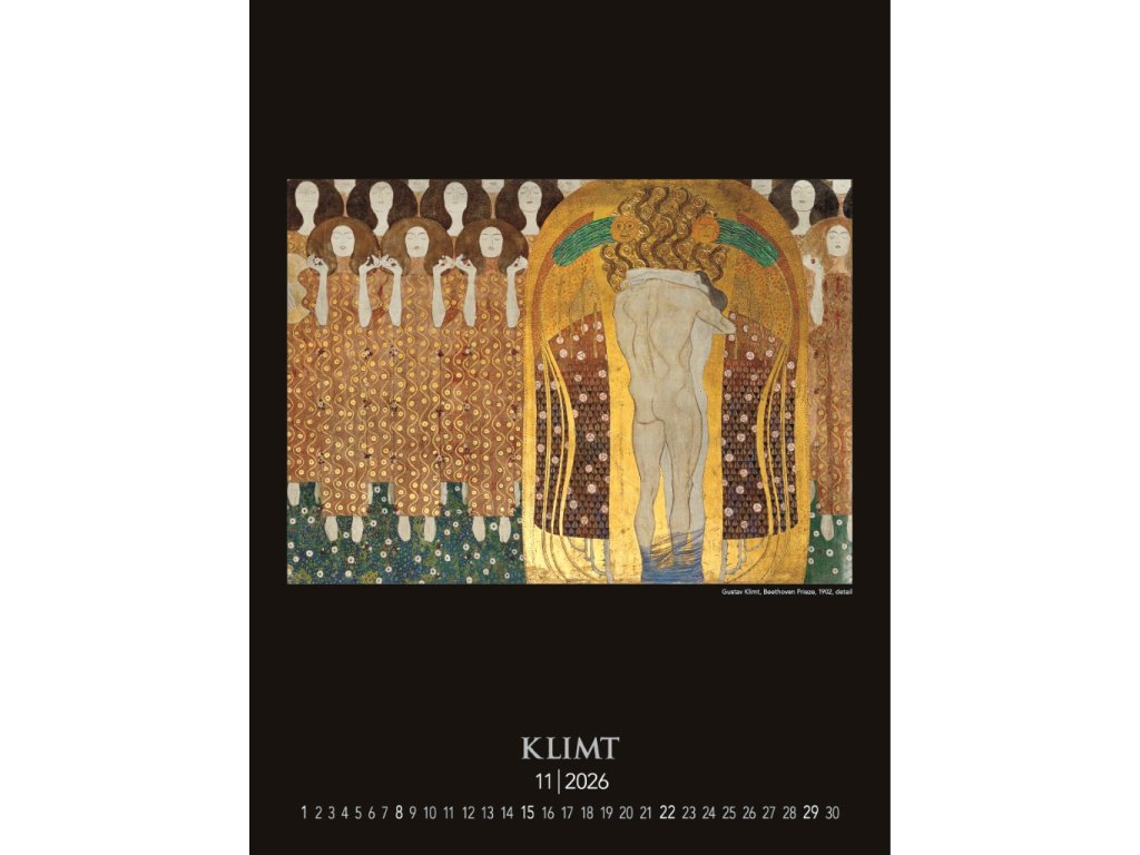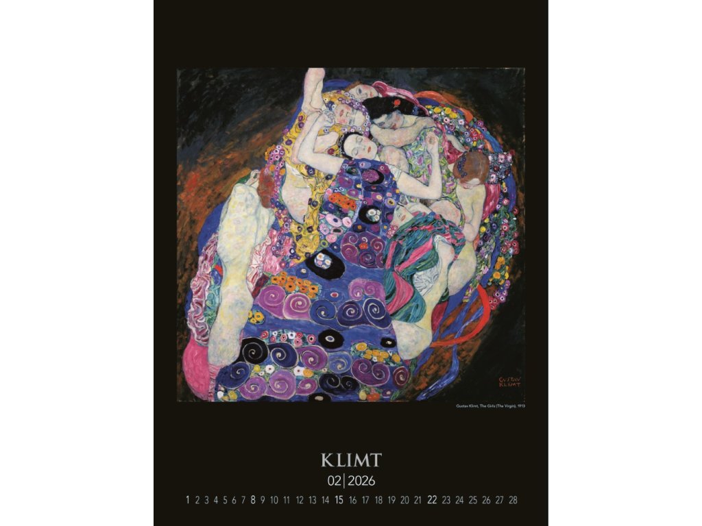 Kalendár s dielami Gustava Klimta vás zavedie do sveta zmyselnosti, symbolizmu a dekoratívneho lesku. Nechajte sa unášať ikonickými obrazmi ako Bozk, Portrét Adely Bloch-Bauer či Strom života, ktoré žiaria zlatými tónmi a jedinečným štýlom viedenskej secesie. Vďaka použitiu luxusnej zlatej fólie na vybraných detailoch kalendára vynikne Klimtov charakteristický zlatý efekt aj vo fyzickej podobe – pre ešte silnejší umelecký zážitok. Každý mesiac prináša dotyk krásy, ktorý ozvláštni váš domov alebo kanceláriu. Perfektný darček pre milovníkov estetiky a výnimočného umenia.FORMAT | 420 x 560 |