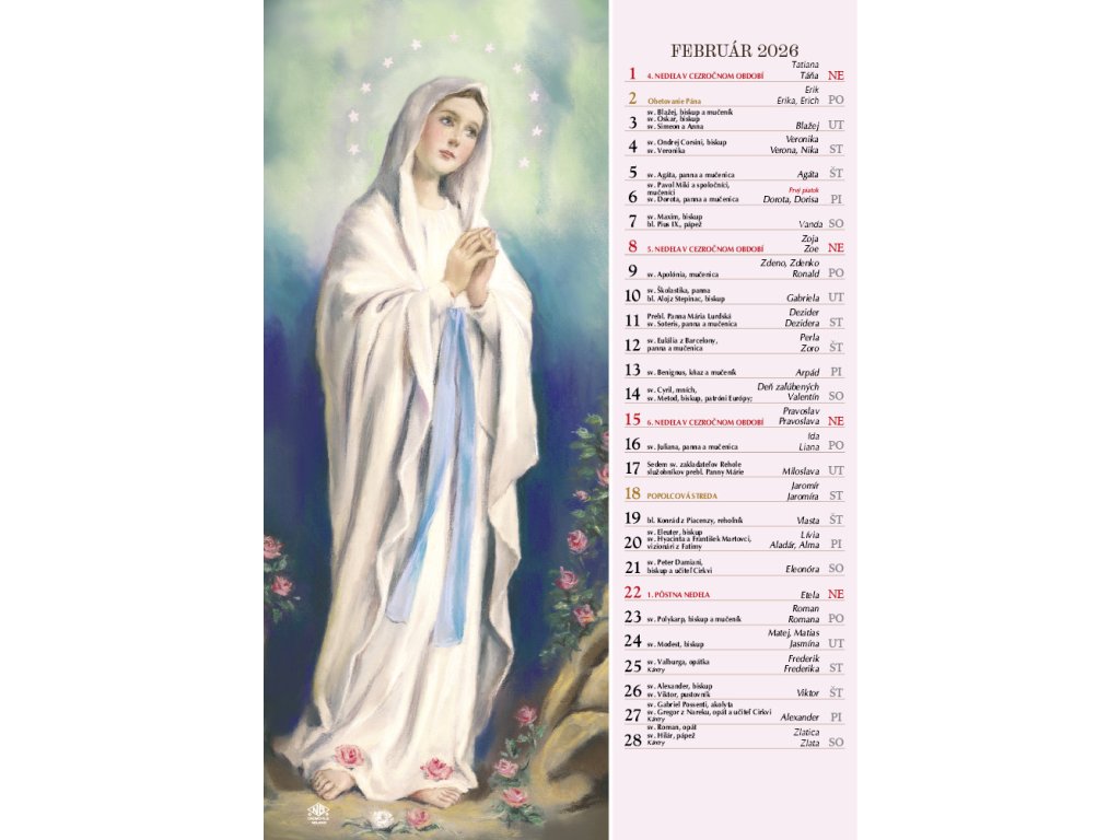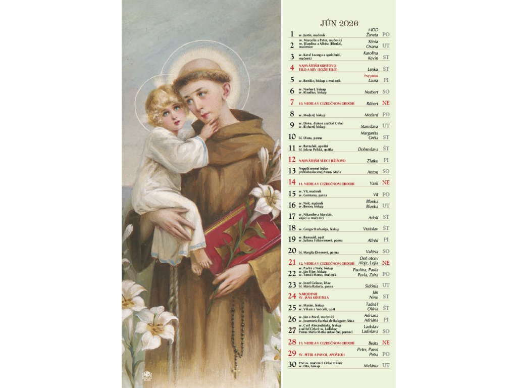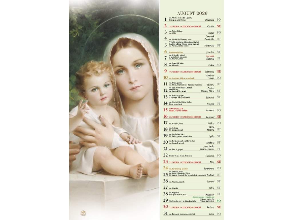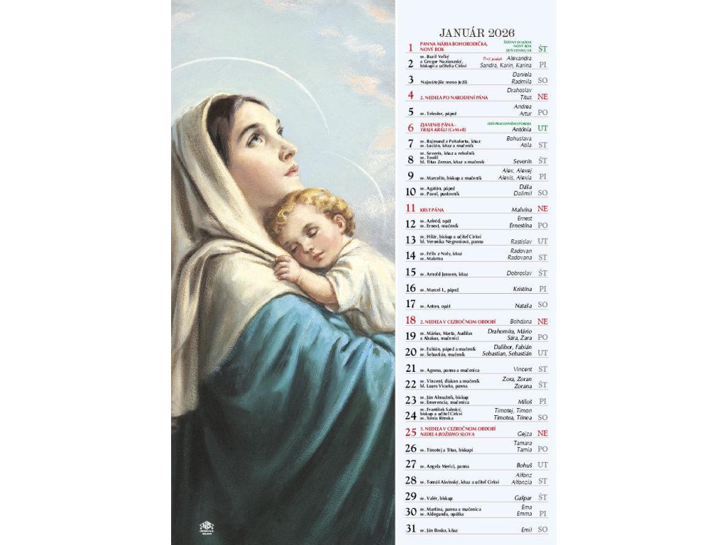 Rímskokatolícky nástenný kalendár so slovenským menným kalendáriom a cirkevnými sviatkami…FORMAT | 240 x 340 |