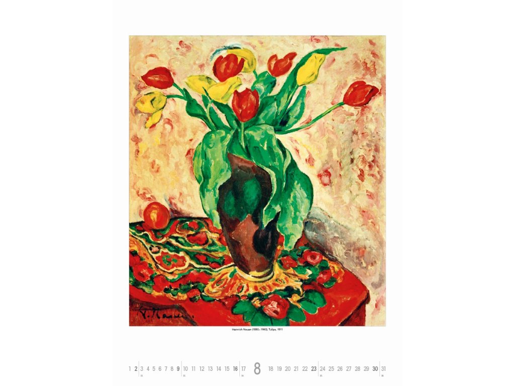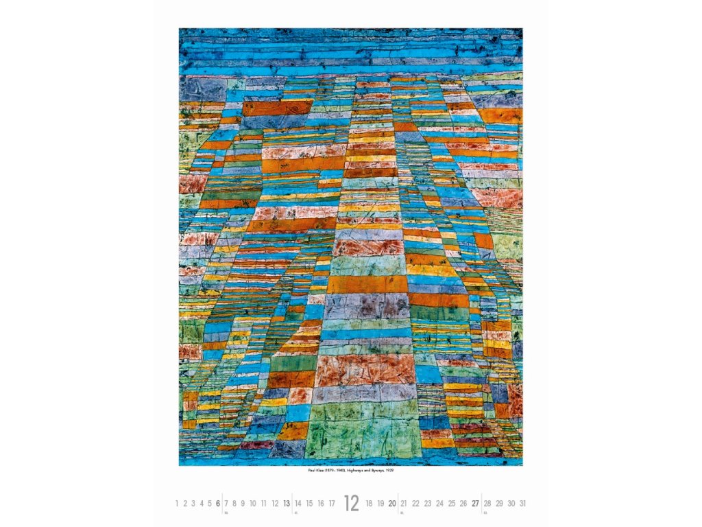 Objavte vývoj moderného umenia v jedinečnom kalendári, ktorý zachytáva prechod od svetla a farieb impresionizmu Clauda Moneta až po expresívne a abstraktné vízie Paula Kleeho. Kalendár predstavuje diela významných umelcov ako Wassily Kandinský, August Macke, Heinrich Nauen a ďalších priekopníkov, ktorí formovali umelecké hnutia prelomu 19. a 20. storočia. Každý mesiac prináša výnimočné dielo, ktoré odráža revolučné zmeny vo vnímaní tvaru, farby a emócií.FORMAT | 420 x 560 |