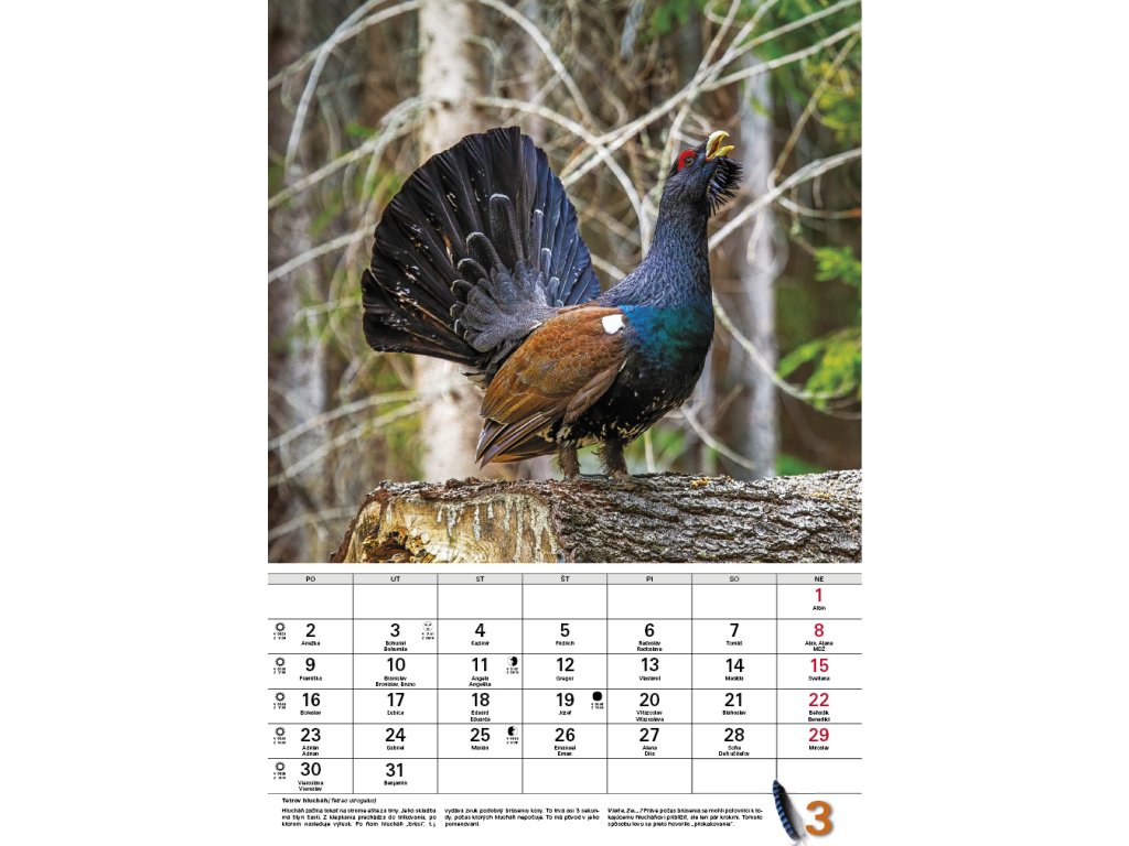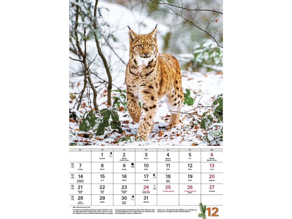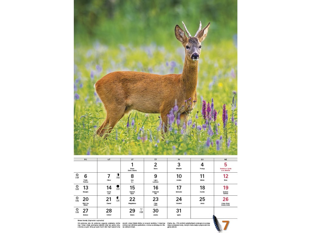 Kalendár pre všetkých milovníkov prírody, lesa a poľovníckej tradície. Každý mesiac prináša nádherné fotografie lesnej zveri v jej prirodzenom prostredí – srnce, jelene, diviaky, bažanty a iné typické druhy slovenskej prírody. Kalendár obsahuje aj praktické informácie pre poľovníkov: fázy mesiaca, poľovnícke sezóny, prehľad období lovu a užitočné poznámky.FORMAT | 340 x 485 |