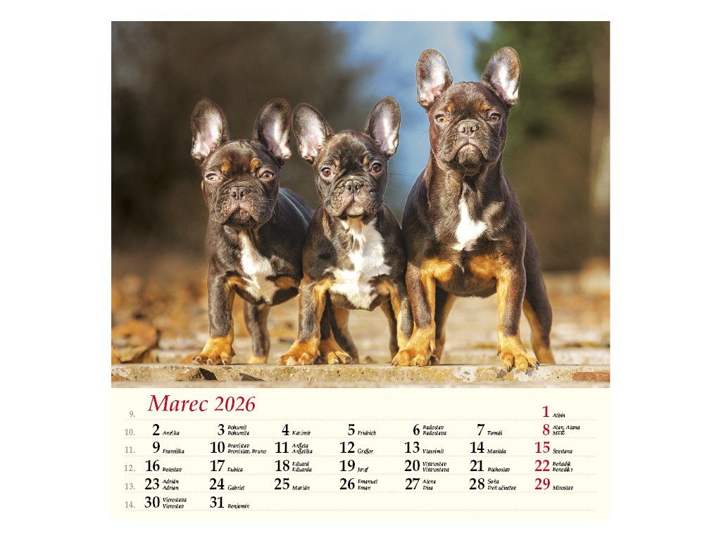 Nástenný kalendár Psy 2026