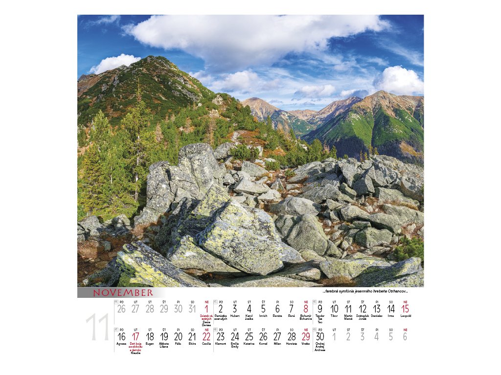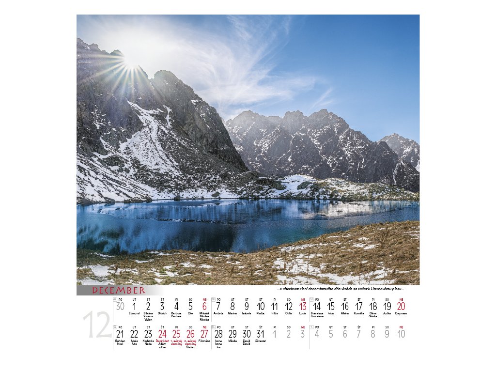 Kalendár Krásy hôr vás každý mesiac zavedie do dychberúcich scenérií horského sveta – od zasnežených štítov a zelených alpských lúk až po tajomné ranné hmly a zlaté západy...