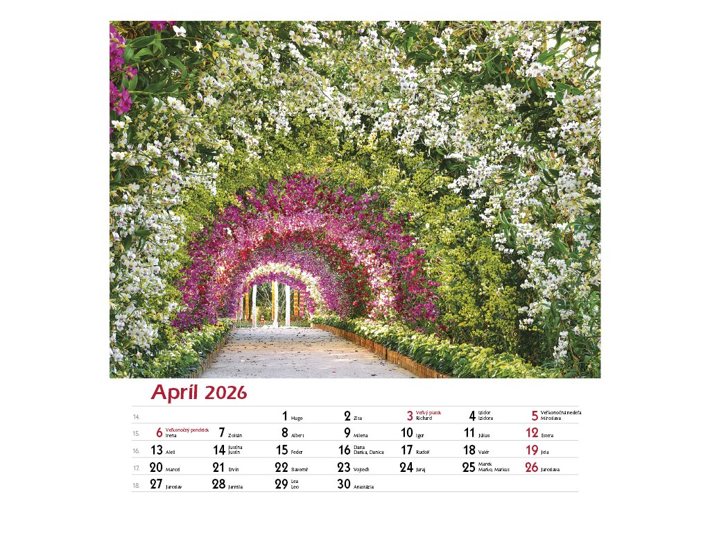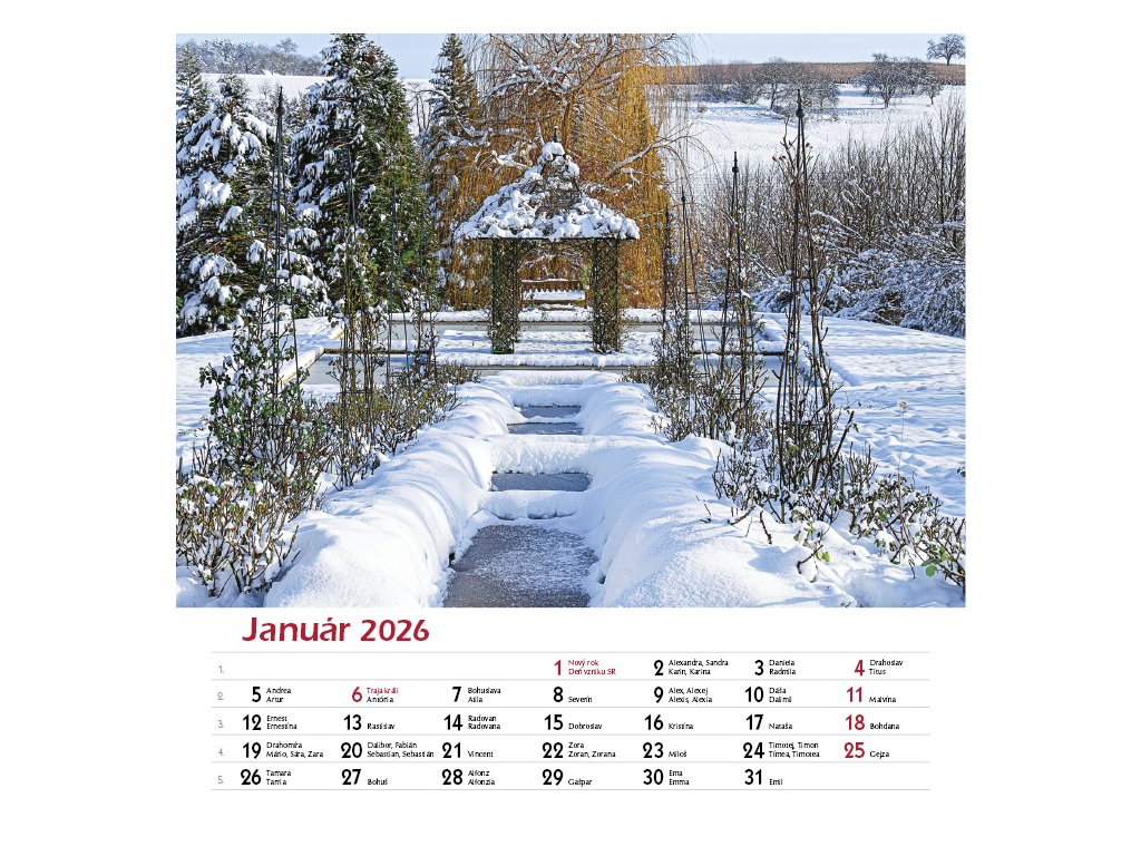 Potešte svoje oči aj dušu pohľadom na rozkvitnuté záhrady po celý rok. Tento elegantný nástenný kalendár prináša 12 nádherných fotografií záhrad v rôznych ročných obdobiach – od jarných kvetov až po pokojnú zimnú krajinu.FORMAT | 330 x 330 |