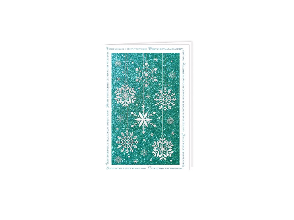 Novoročný pozdrav s glitrovým tyrkysovým papierom, razba,vnútorný papierik biely. Dodávané spolu s obálkou.FORMAT | 115 x 170 |