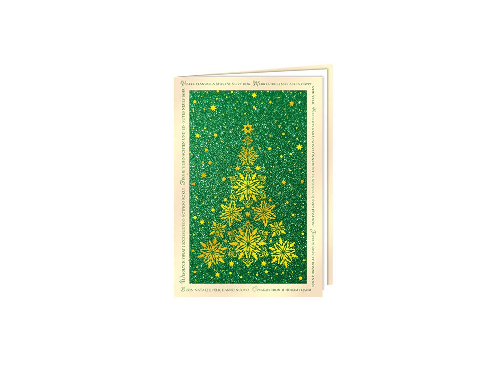 Novoročný pozdrav s glitrovým zeleným papierom, razba, vnútorný papierik biely. Dodávané spolu s obálkou.| FORMAT | 115 x 170 |