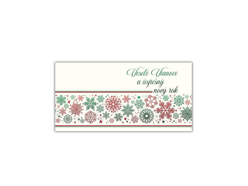 Jednolistová novoročenka na grafickom papieri s textom,zelená a červená razba. Dodávané spolu s obálkou.| FORMAT | 200 x 100 |