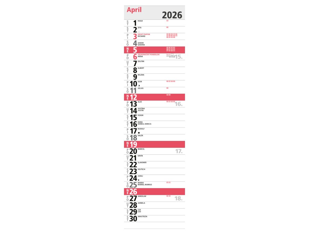 Moderný a prehľadný nástenný kalendár v červenom dizajne ponúka praktické mesačné kalendárium s menami SK, sviatky SK+ EU, fázy mesiaca. Ideálny pomocník pre každodenné plánovanie, pripomienky narodenín, menín či dôležitých udalostí počas celého roka.FORMAT | 110 x 420 |