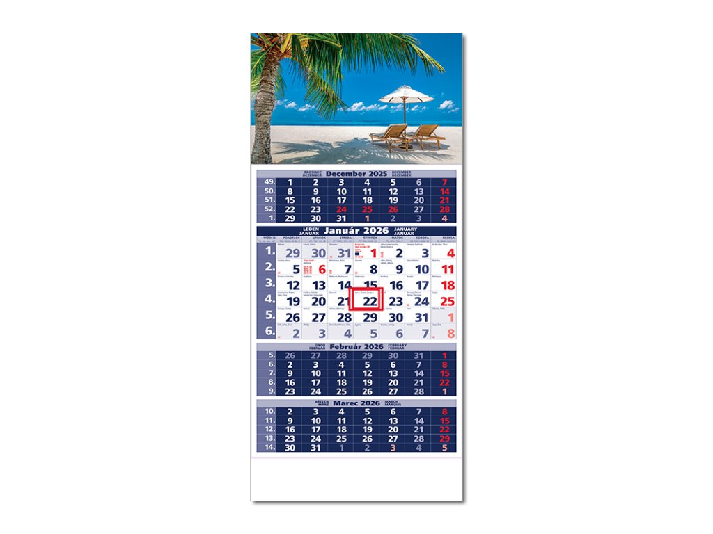 Plánovací kalendár so 4-mesačným kalendáriom s menami v SK, názvy mesiacov a dní v SK, CZ, EN, DE a HU. Obrázok FFORMAT | 295 x 663 |