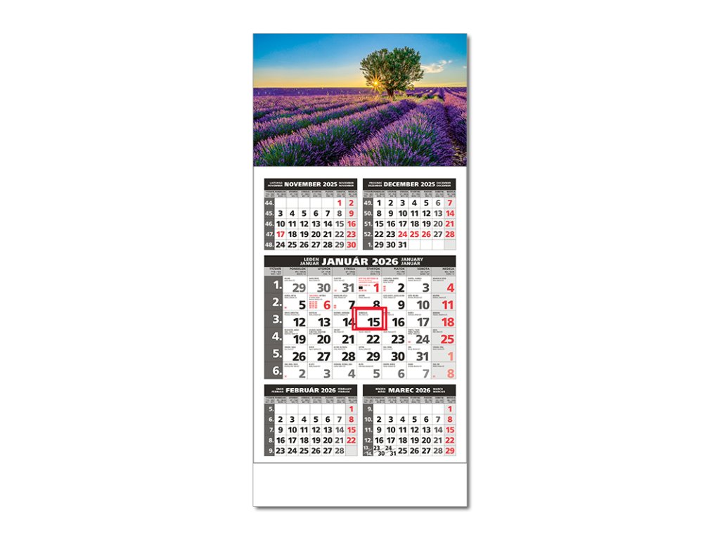 Plánovací kalendár s 5-mesačným kalendáriom s menami v SK, názvy mesiacov a dní v SK, CZ, UK, DE a FR. Možnosť výberu obrázku. Obrázok CFORMAT | 295 x 663 |