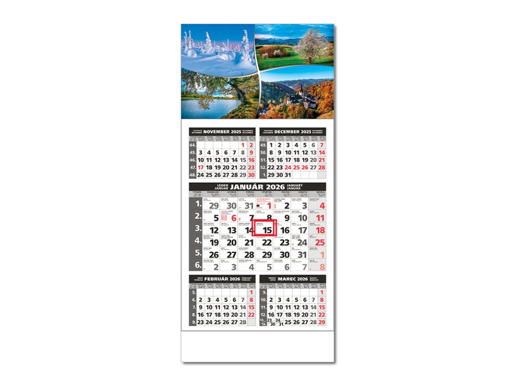 Plánovací kalendár s 5-mesačným kalendáriom s menami v SK, názvy mesiacov a dní v SK, CZ, UK, DE a FR. Možnosť výberu obrázku. Obrázok DFORMAT | 295 x 663 |