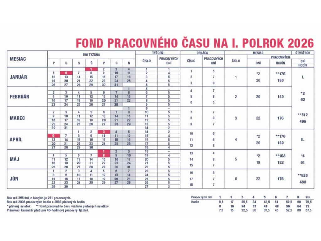 Stolový kalendár Pracovný kalendár stĺpcový 2026