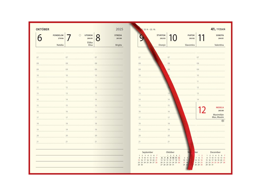 Týždenný diár A5 stĺpcový - ELASTIC RED 2025